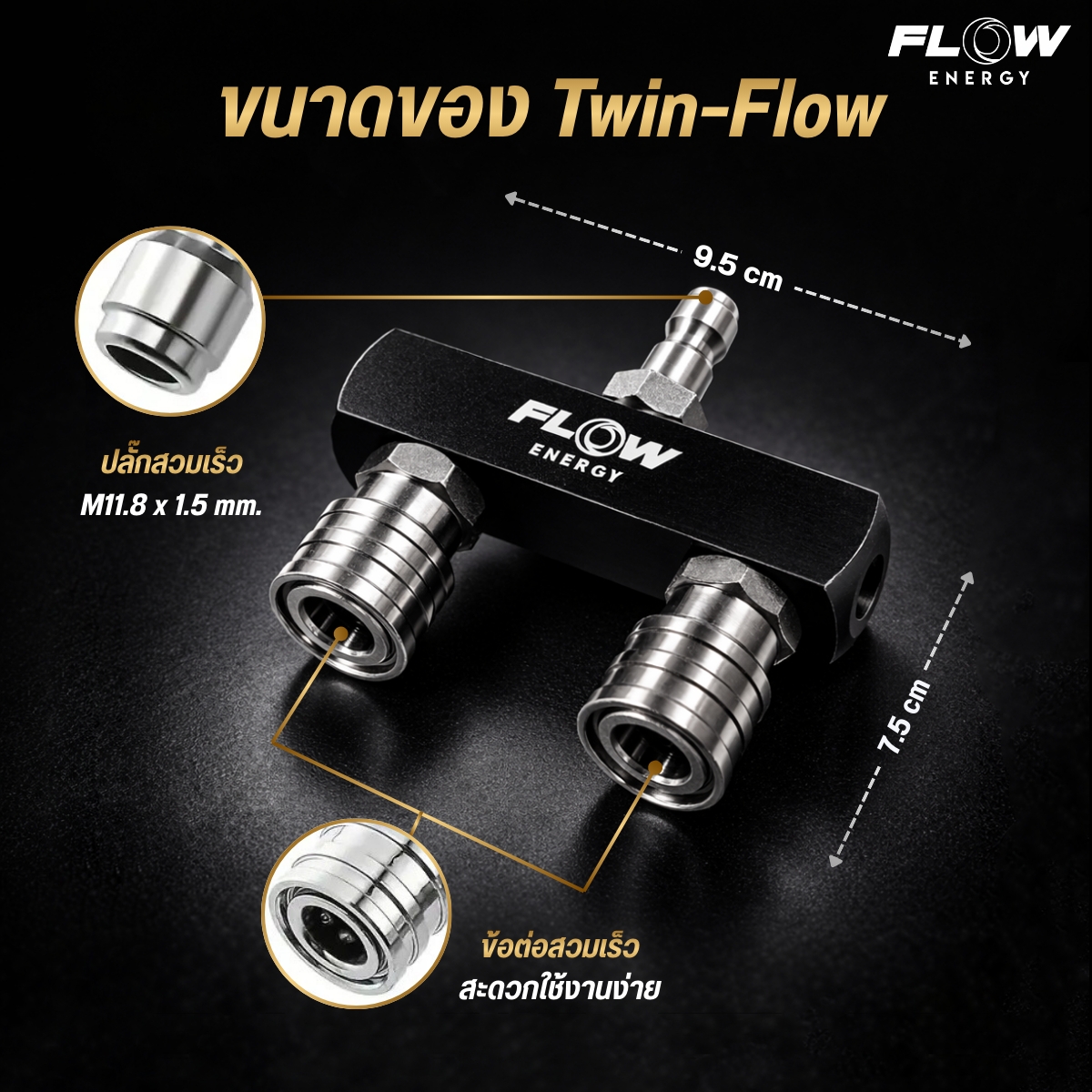 Twin-Flow จาก FLOW ENERGY คืออุปกรณ์ตัวแยกหัวฉีดที่ช่วยให้คุณสามารถ ติดตั้งหัวฉีดได้พร้อมกัน 2 หัว จากปืนฉีดน้ำเพียงตัวเดียว ช่วยเพิ่มพื้นที่การฉีด ทำให้งานล้างเสร็จเร็วขึ้น ประหยัดเวลา และเพิ่มประสิทธิภาพการทำงาน