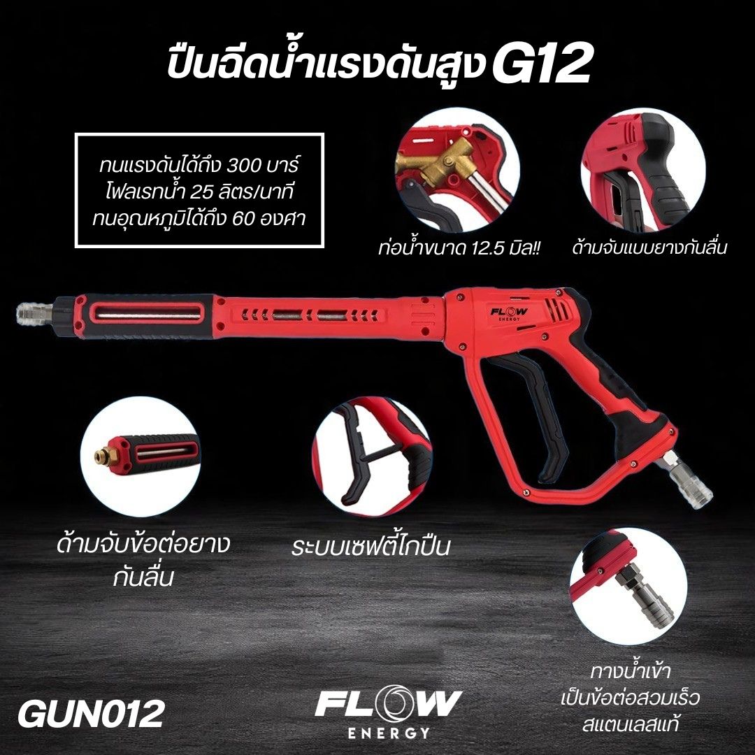 ปืนฉีดน้ำแรงดันสูง FLOW ENERGY รุ่น G22 เป็นอุปกรณ์ที่ออกแบบมาสำหรับใช้งานร่วมกับเครื่องฉีดน้ำแรงดันสูง เหมาะสำหรับงานทำความสะอาดที่ต้องการแรงดันน้ำสูง เช่น ล้างรถ ล้างแอร์ หรือทำความสะอาดพื้นและผนัง